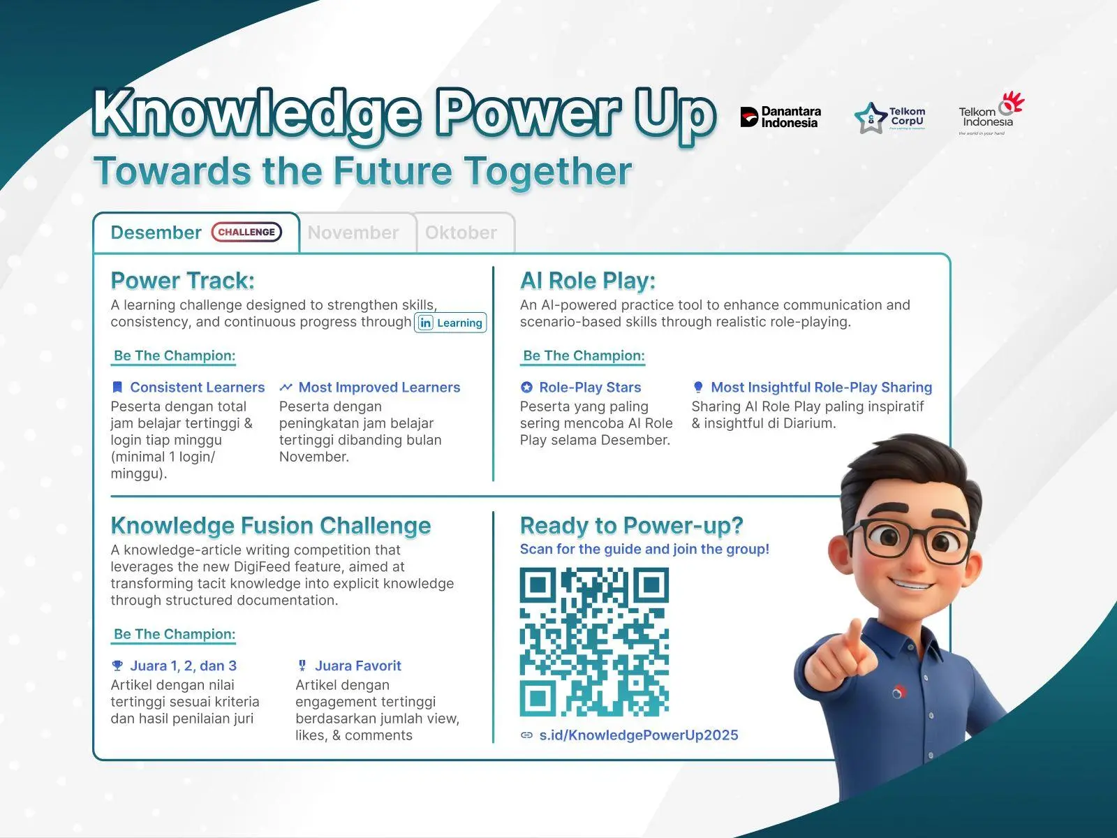 Knowledge Power Up adalah program pembelajaran dan pengembangan diri yang mendorong karyawan mengeksplorasi berbagai topik melalui LinkedIn Learning.